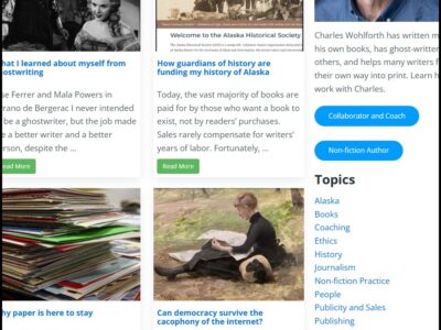 Charles Wohlforth has written many of his own books, has ghost-written others, and helps many writers find their own way into print. Learn how to work with Charles.